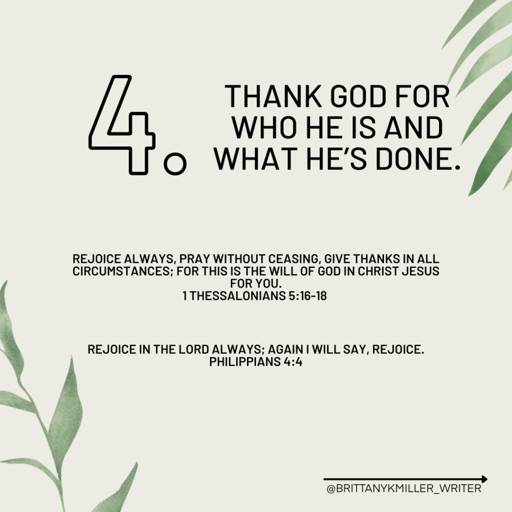 - Thank God for who He is and what He’s done.