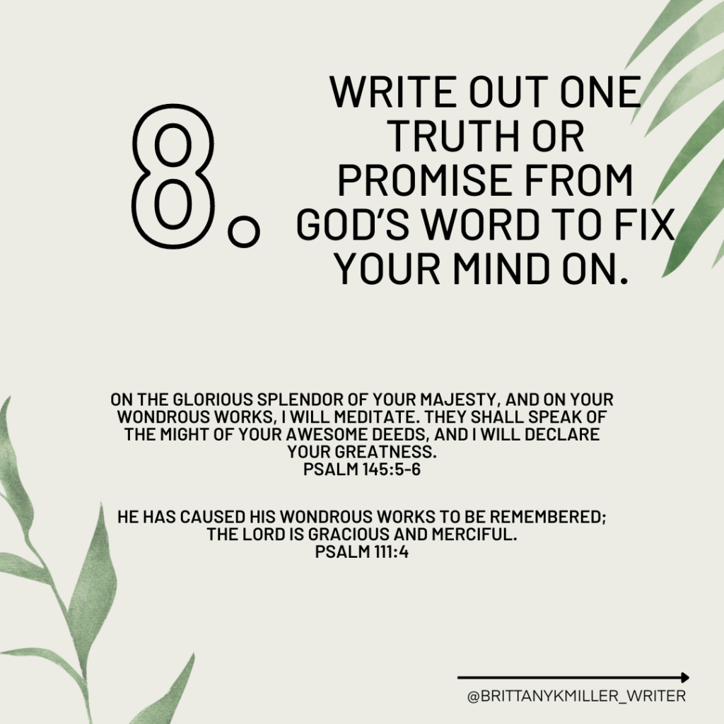 - Write out one truth or promise from God’s Word to fix your mind on.