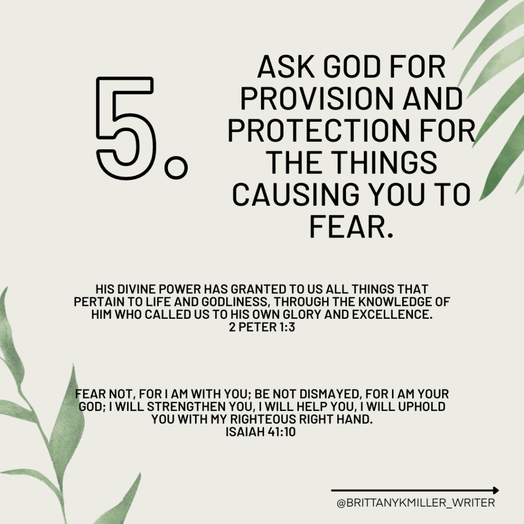 - Ask God for provision and protection for the things causing you to fear.