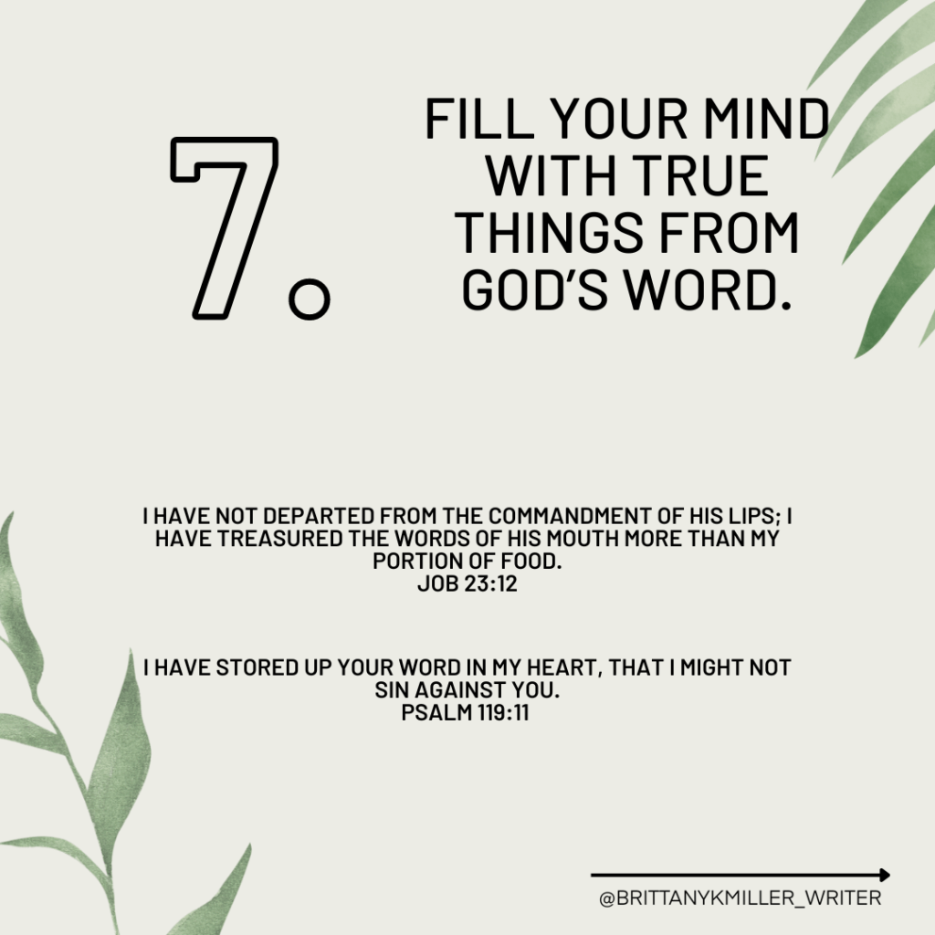 - Fill your mind with true things from God’s Word.