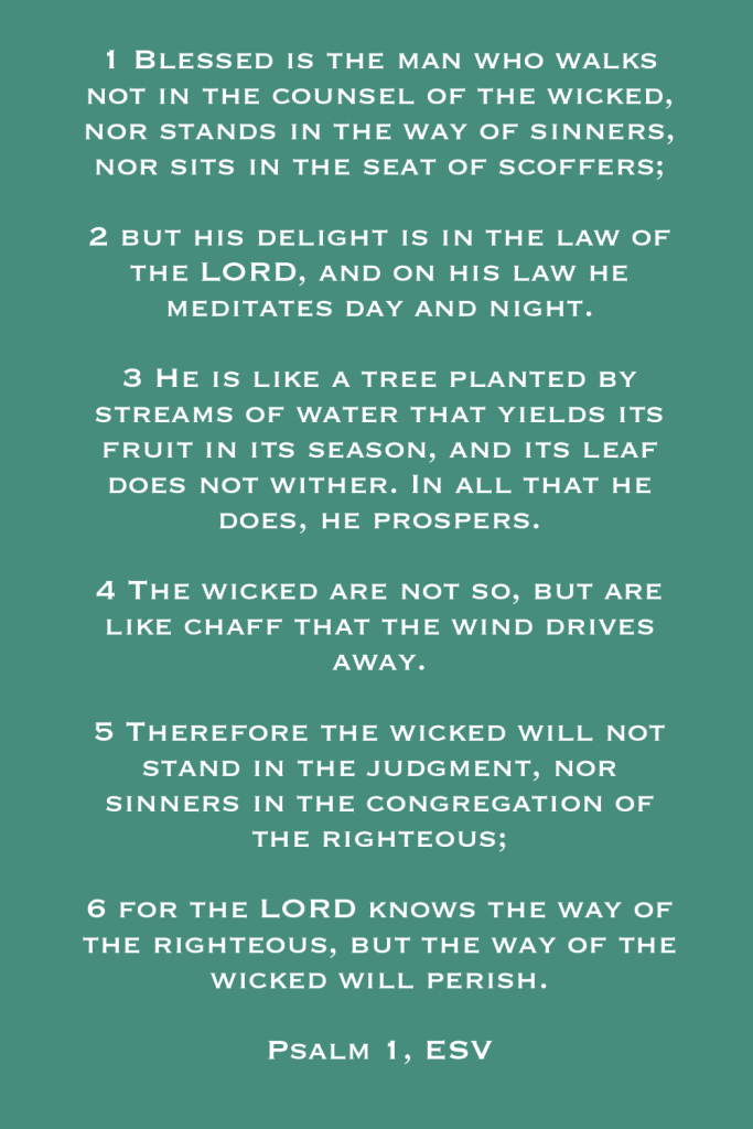 When you abide in the Word of God, you will be like a tree planted by a stream of water. You will consistently receive what you need to grow and bear fruit. Your prosperity will not be for yourself – a tree doesn’t eat its fruit. You will be able to bless those around you. Especially the “wicked” who will perish without the good news of the gospel.