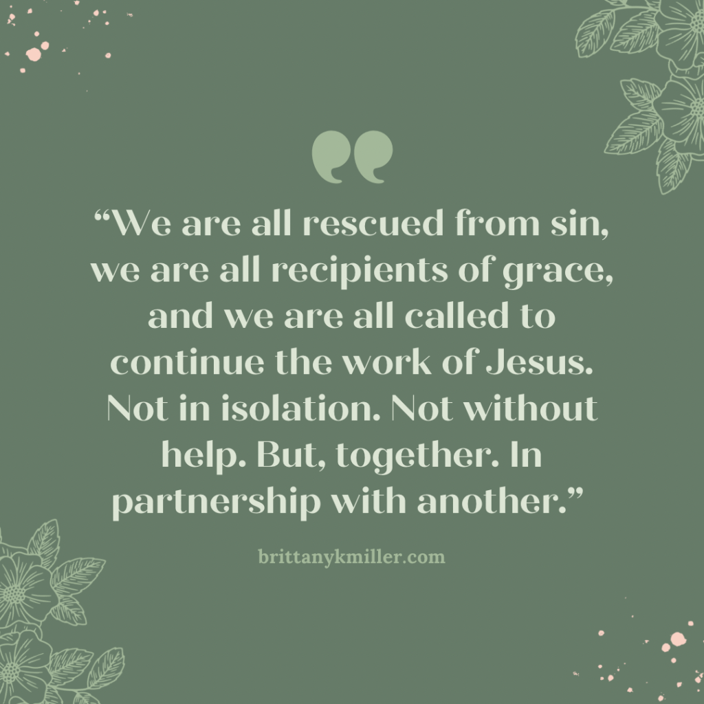 God has prepared good work for you to walk in—we see that in the Great Commission. He has also given you the great command—to love others as Christ has loved you. He provides the comfort, strength, and help for you to walk in those things. He’s provided salvation in Jesus, He’s provided the power, presence, and guidance of the Holy Spirit within you, and he’s placed you into a family of brothers and sisters united in faith and mission. We are all rescued from sin, we are all recipients of grace, and we are all called to continue the work of Jesus. Not in isolation. Not without help. But, together. In partnership with another.