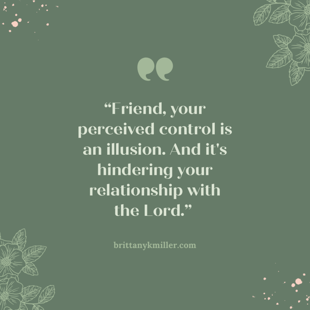 Can you see how the truth of God’s sovereignty gives way to radical trust and obedience in the life of the believer? What about in your life? What are you holding on to so tightly out of fear that if you are not in control, the worst will happen? Friend, your perceived control is an illusion. And it’s hindering your relationship with the Lord.