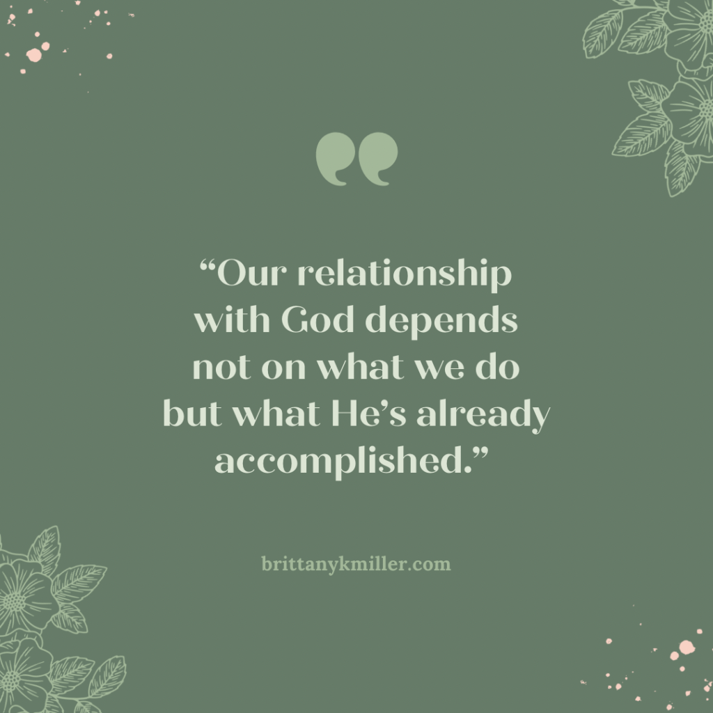 We are the ones in need, and He is the provider. He is sufficient for all—outcomes, direction, comfort, and provision. He is sovereign over all—us, our work, our families, our finances, our health. He needs nothing from us. What He wants is our devotion. He wants us to know, love, trust, obey, and delight in Him. What a privilege and gift! Our relationship with God depends not on what we do but what He’s already accomplished. Now, we can live in harmony with Him, trusting Him to do what He can.