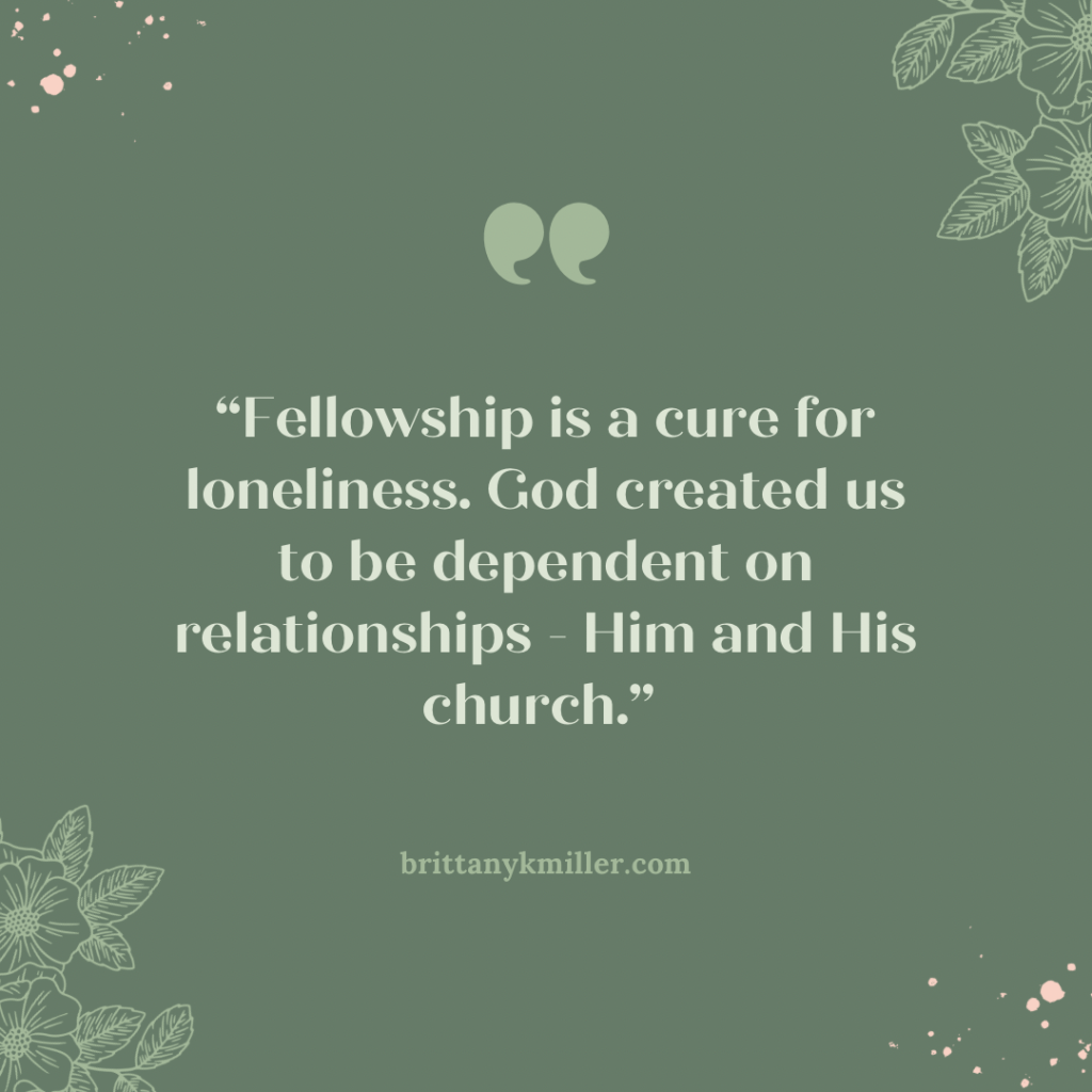 This fellowship is a cure for loneliness. God created us to be dependent on relationships – Him and His church. Loneliness is an epidemic because culture teaches us to rely only on ourselves. But this isn’t a joyful way to live.